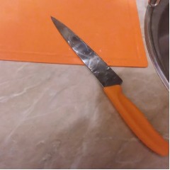 Справляется с овощами, фруктами, мясом, рыбой. Да и хлеб легко разрежет. Короче, удобный и качественный нож. Красивая красная ручка, но на фото кажется, что цвет немного другой. Это, наверное, лучший нож в своей ценовой категории.